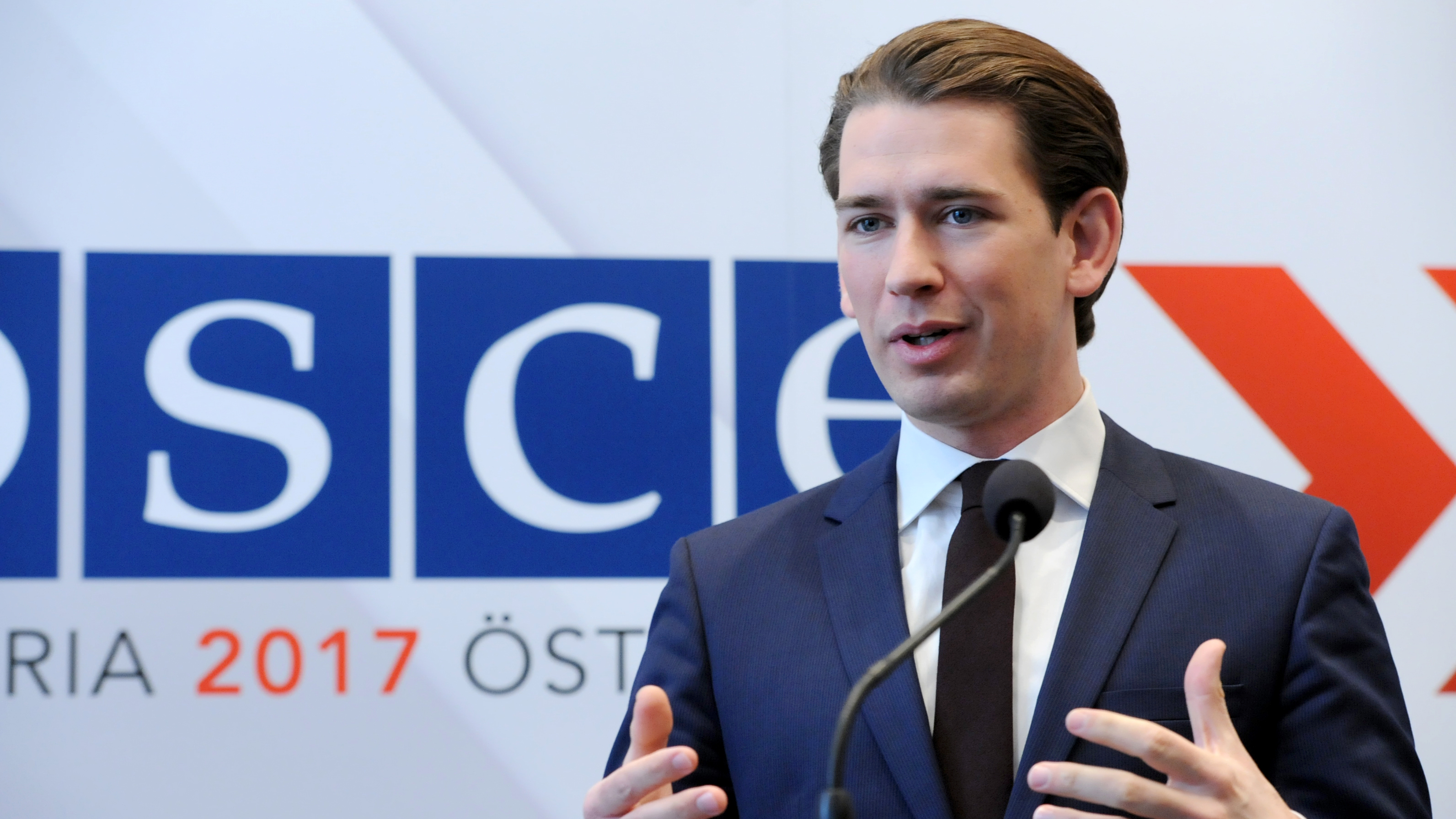 2017 OSCE Chairperson-in-Office, Austrian Foreign Minister, Sebastian Kurz, speaking at a press conference after the Permanent Council meeting, Vienna, 12 January 2017.