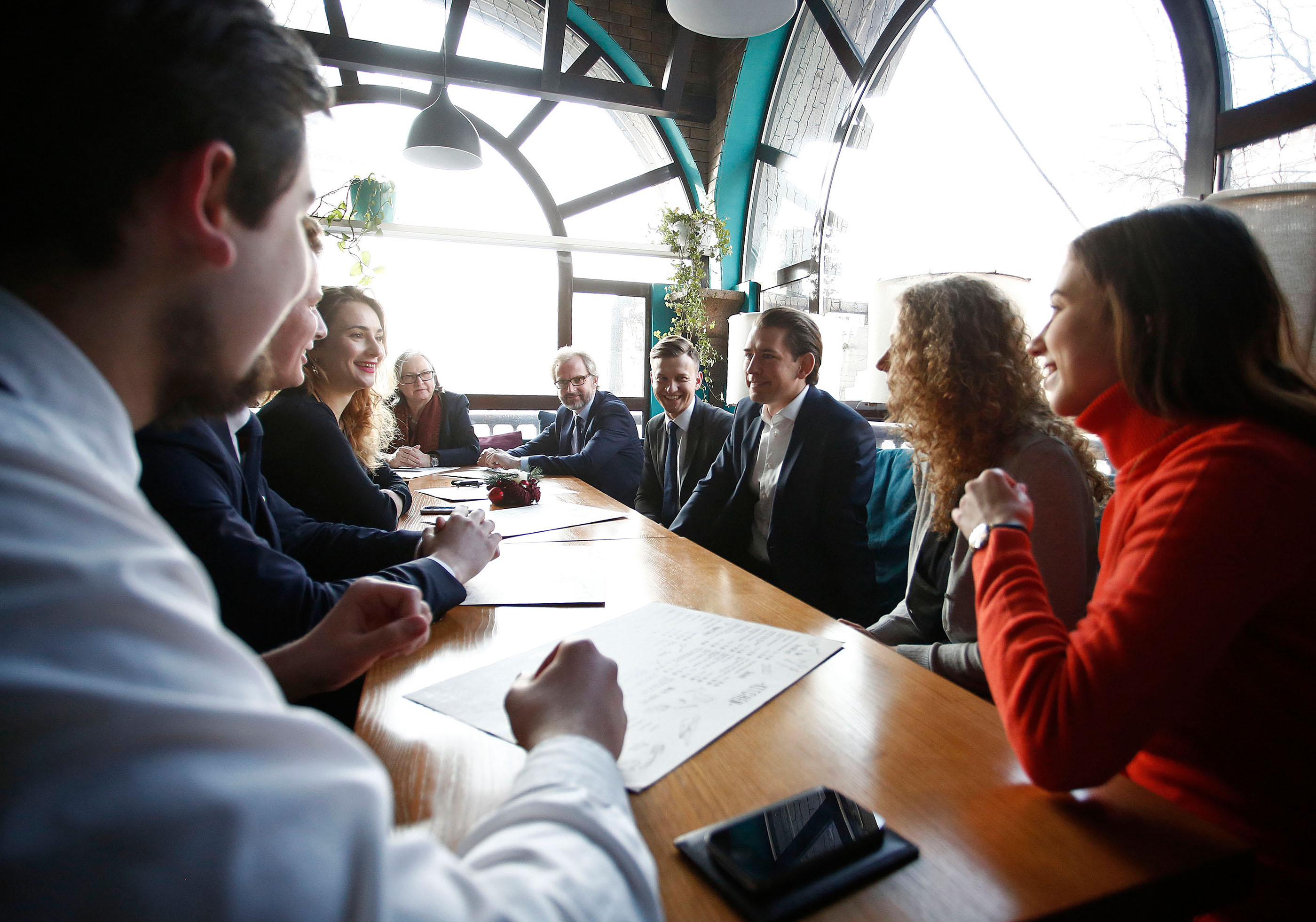 OSCE Chairperson-in-Office and Austria’s Foreign Minister Sebastian Kurz, meeting representatives of the Youth Contact Group during a tour of Kyiv, 17 January 2017.