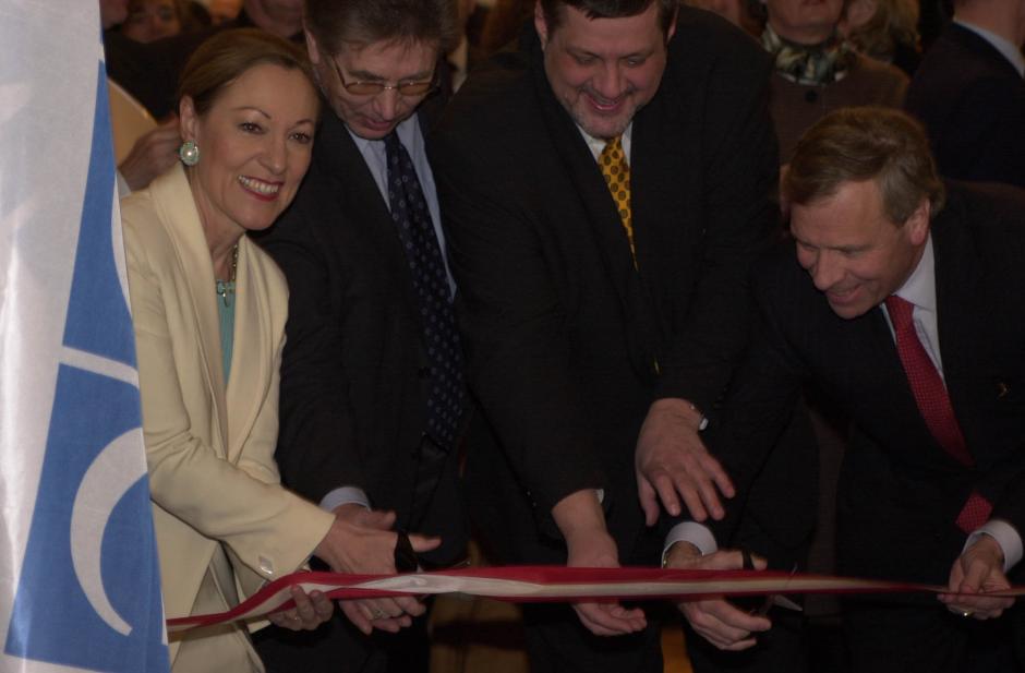 Benita Ferrero-Waldner (left), the Austrian Foreign Minister, inaugurates the newly refurbished OSCE premises at the Vienna Hofburg, 13 January 2003.