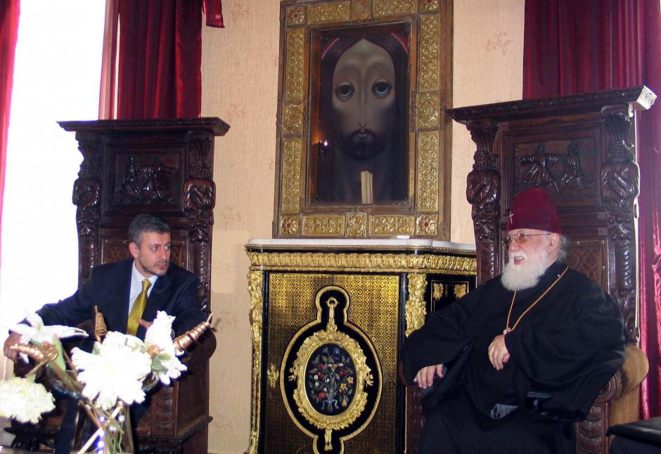 OSCE Chairman-in-Office, Bulgarian Foreign Minister Solomon Passy, in a meeting with Georgian Catholicos-Patriarch Ilia II on 15 March in Tbilisi, 2004.