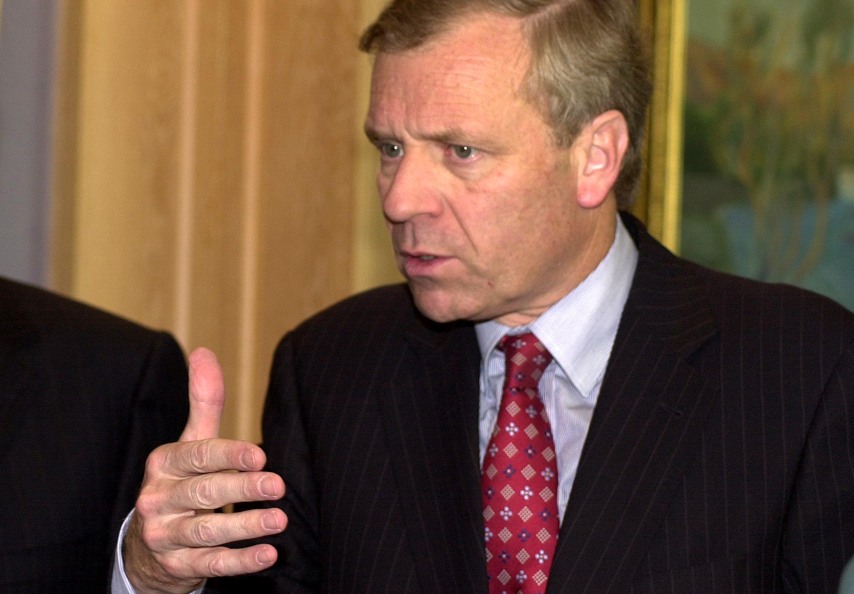 The OSCE Chairman-in-Office gives a brief statement on his meeting with Kazakhstan's Foreign Minister, Kasymzhomart Tokaev, 7 July 2003.