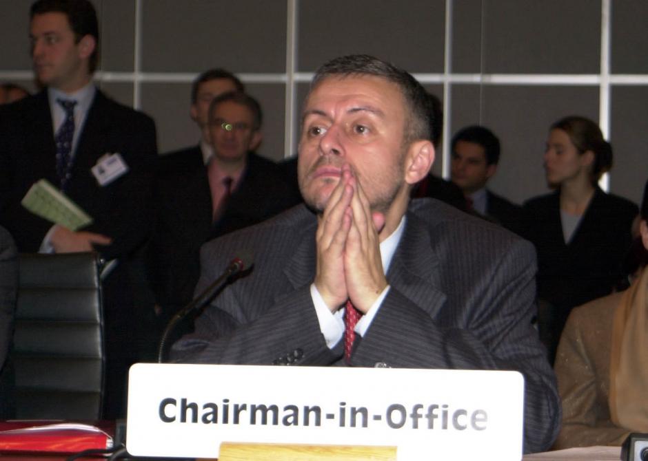 OSCE Chairman-in-Office, Bulgarian Foreign Minister Solomon Passy, looks on at the OSCE Permanent Council in Vienna, 15 January 2004.