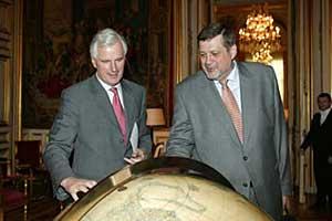 OSCE Secretary General Jan Kubis (right) and French Foreign Minister Michel Barnier at an OSCE conference in Paris, focusing on racist, xenophobic and anti-Semitic propaganda on the Internet and hate crimes, 17 June 2004.
