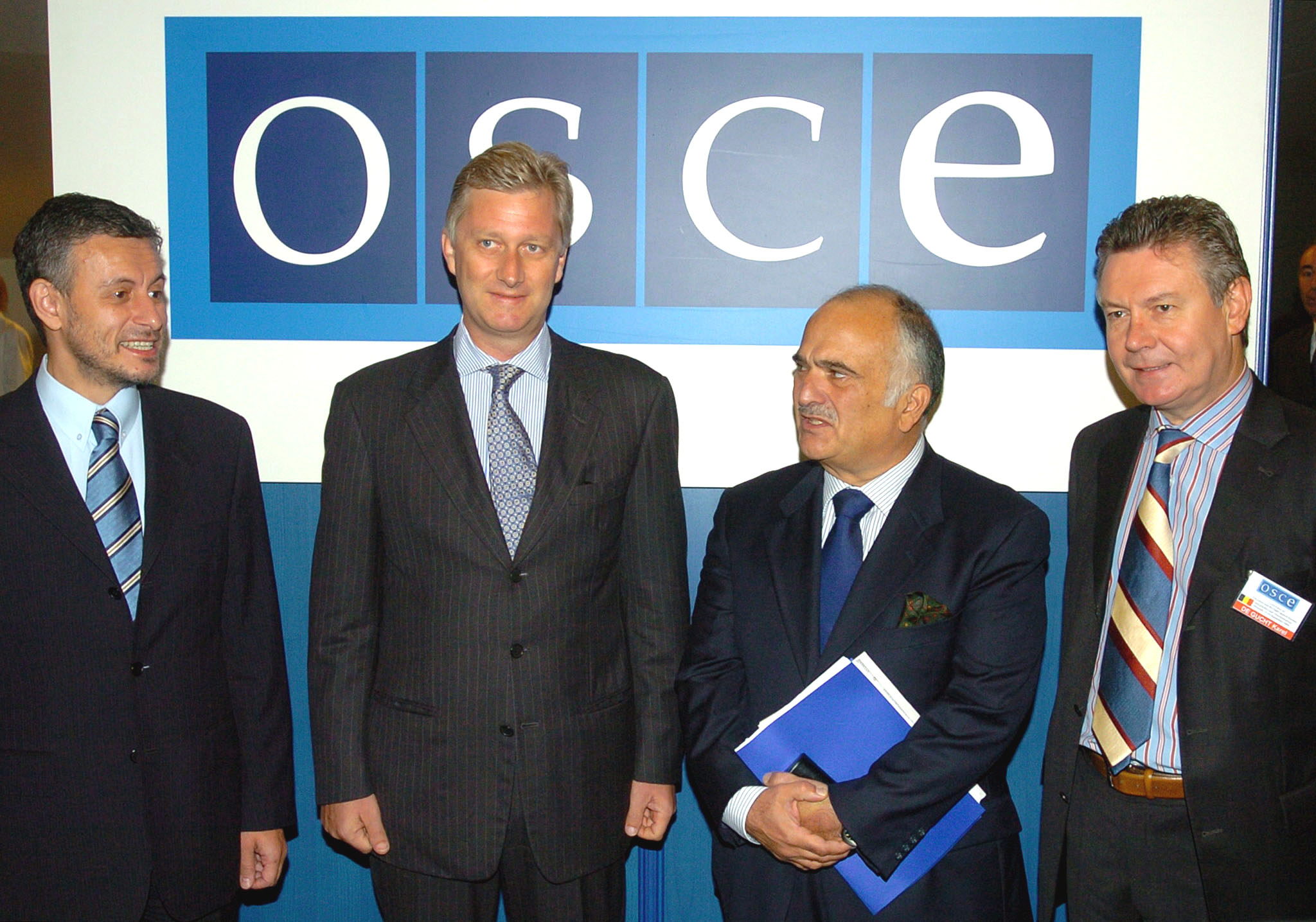 From left to right: OSCE Chairman Solomon Passy, Prince Philip of Belgium, Prince Hassan of Jordan and Belgian Foreign Minister Karel De Gucht at the OSCE conference on Tolerance in Brussels, 13 September 2004.