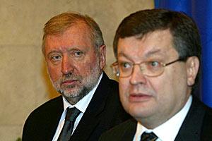 OSCE Chairman-in-Office Dimitrij Rupel (left) met Ukrainian Foreign Minister Kostyantyn Gryshchenko in Kyiv, 4 January 2005.