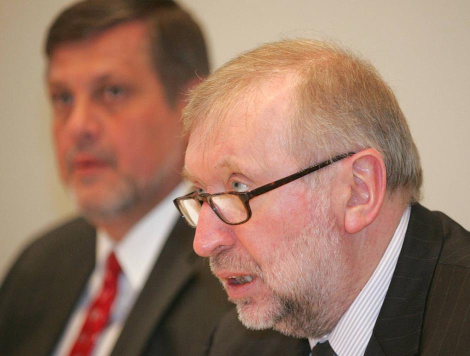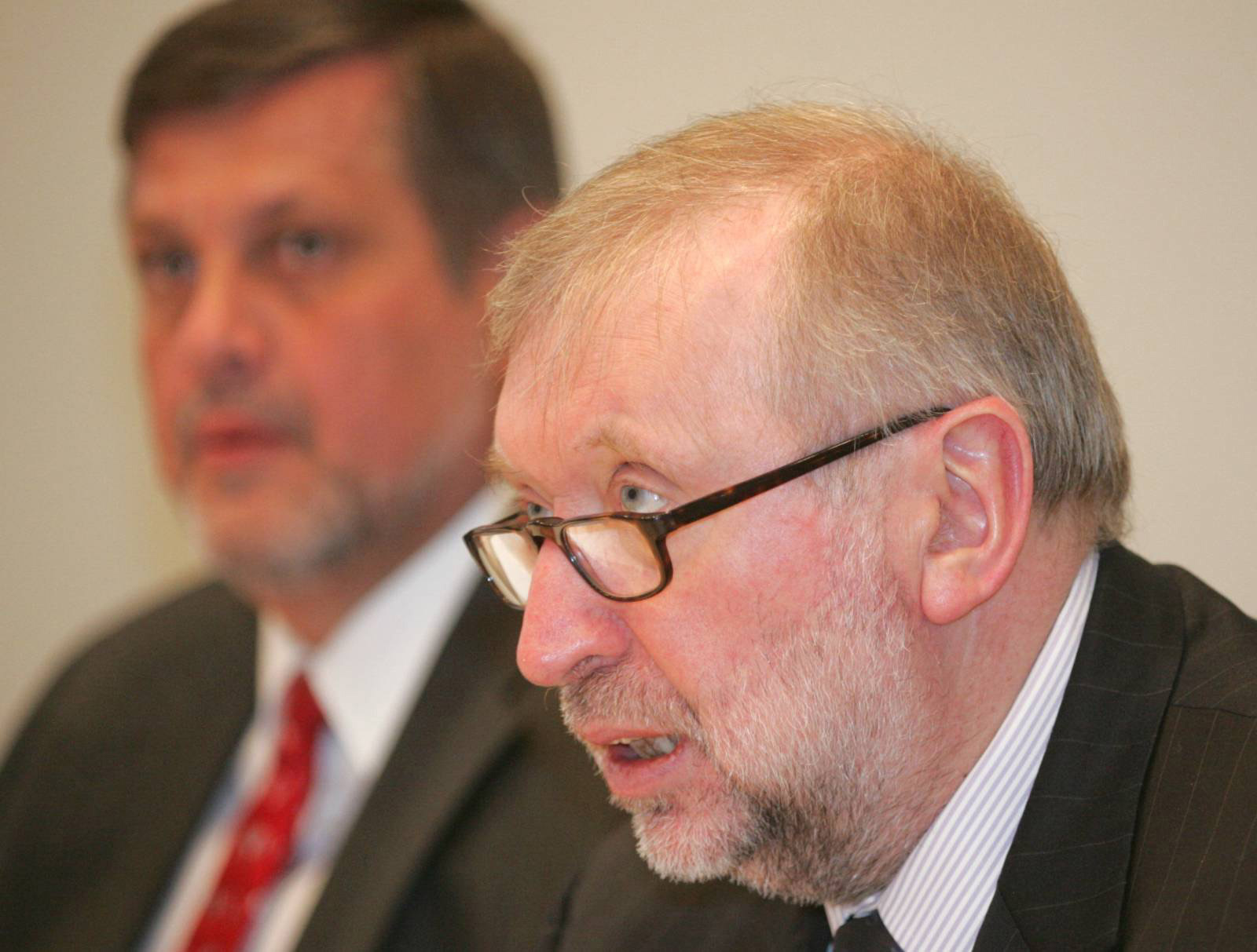 OSCE Chairman-in-Office Dimitrij Rupel (front) and OSCE Secretary General Jan Kubis at the Troika meeting in Vienna, 14 January 2005.