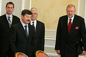 OSCE Chairman-in-Office Dimitrij Rupel (right) meets with the Chairman of the Kazakhstan Security Council, Bulat Utemuratov, in Astana, 15 February 2005.