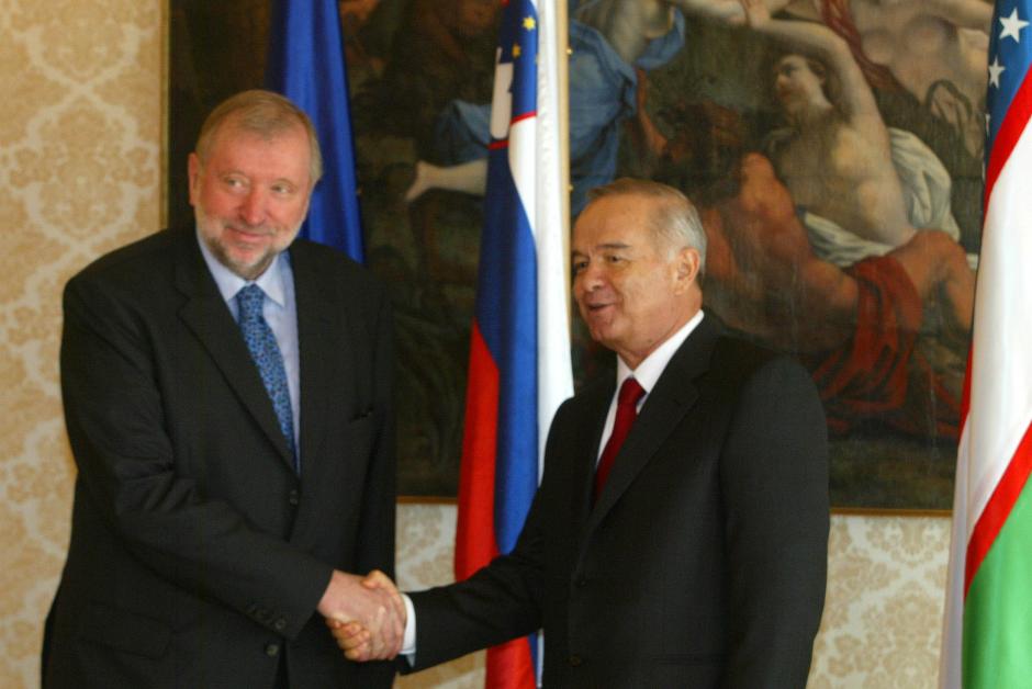 OSCE Chairman-in-Office Dimitrij Rupel (left) meets President of Uzbekistan Islam Karimov in Brdo near Kranj, 17 March 2005.