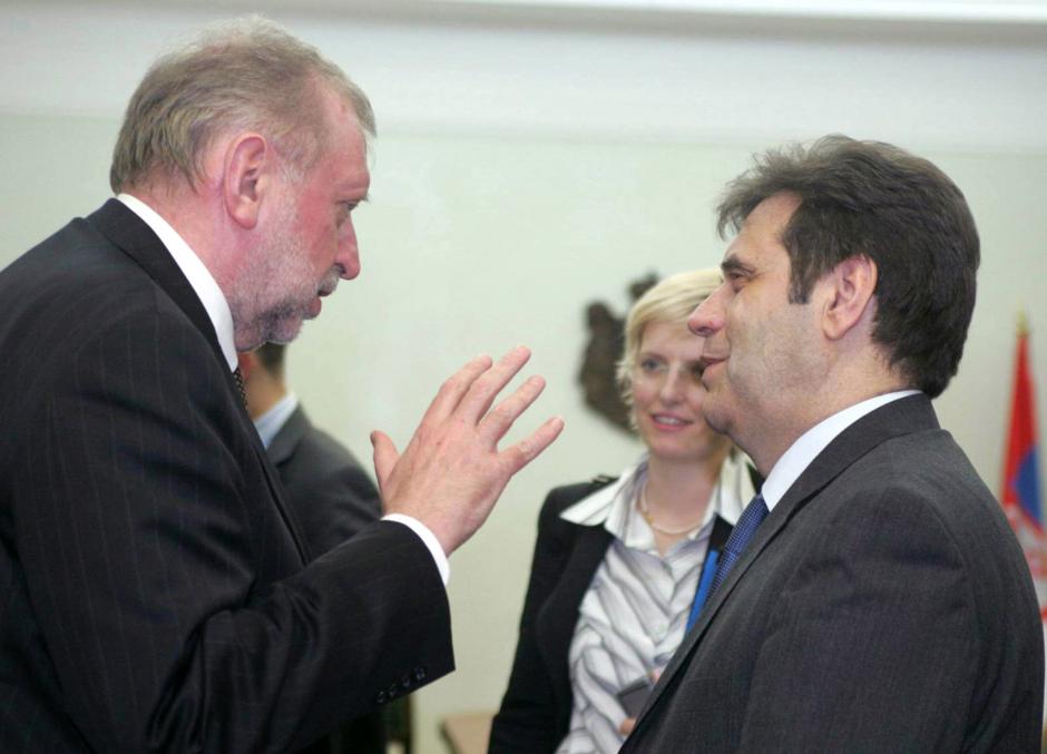 OSCE Chairman-in-Office Dimitrij Rupel (left) meets Prime Minister of Serbia Vojislav Kostunica in Belgrade, 4 April 2005.
