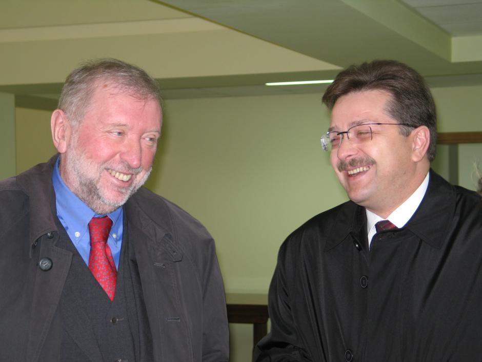 OSCE Chairman-in-Office Dimitrij Rupel meets Moldovan Foreign Minister Andrei Stratan (right) in Chisinau, 18 October 2005.