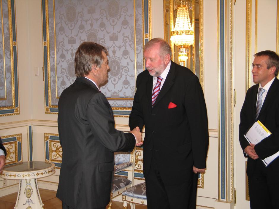 OSCE Chairman-in-Office Dimitrij Rupel (right) with the President of Ukraine Viktor Yushchenko in Kyiv, 19 October 2005.