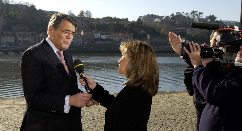 Chairman-in-Office Antonio Martins da Cruz interviewed during the Ministerial Council in Porto, 6 December 2002. (Alfredo Cunha/OSCE) Photo details