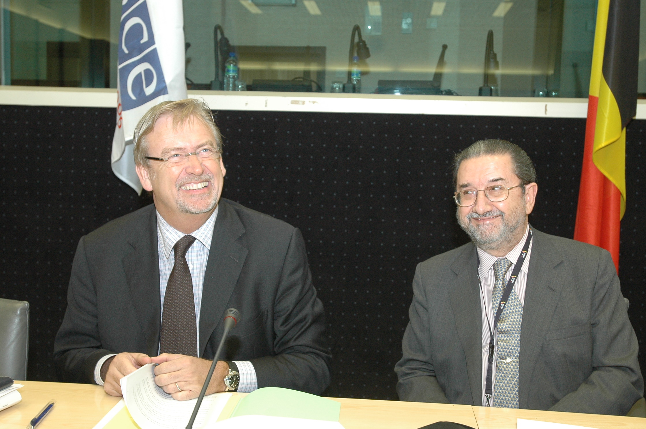 Special Envoy of the Belgian OSCE Chairmanship, Pierre Chevalier (left) and the Head of Spain's Permanent Mission to the OSCE, Carlos Sanchez de Boado, at a meeting of the Troika with the Asian Partners for Co-operation, Brussels, 3 December 2006.