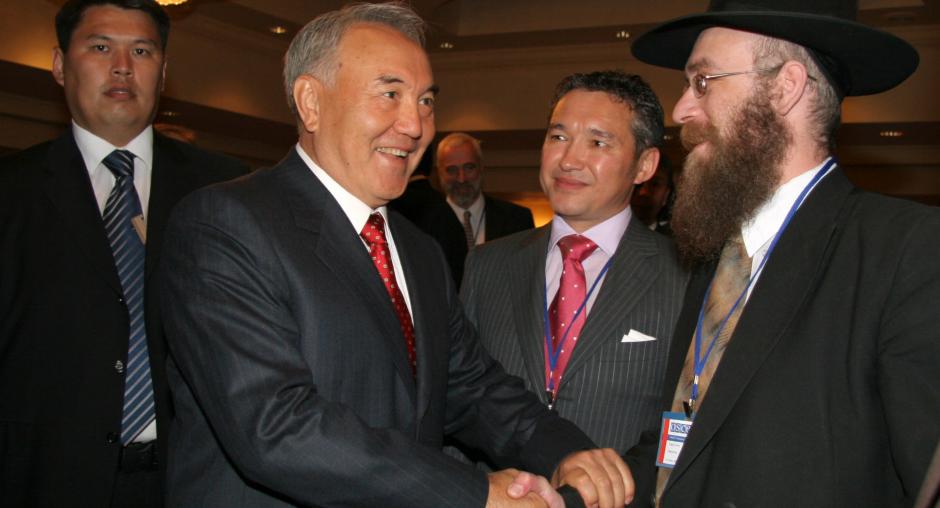 Kazak President Nursultan Nazarbayev meets Yeshaya Cohen (right), the Chief Rabbi of Kazakhstan, as Ambassador Doulat Kuanishev (centre) looks on, at an OSCE meeting on tolerance, Almaty, 12 June 2006. (OSCE/Mikhail Evstafiev)