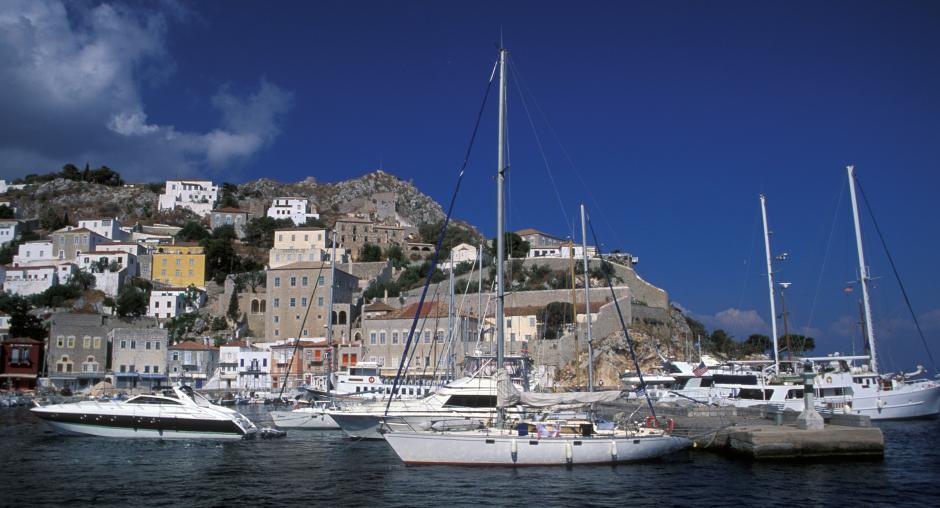 The tall and colourful houses on the Greek island of Hydra are built from the island's gray stone. Pictured here is the Port of Hydra. (Greek National Tourism Organisation)