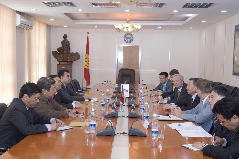 Zhanybek Karibzhanov, Special Envoy of the OSCE Chairperson-in-Office, discusses the current situation in Kyrgyzstan with the interim Deputy Foreign Minister, 9 Apr 2010.