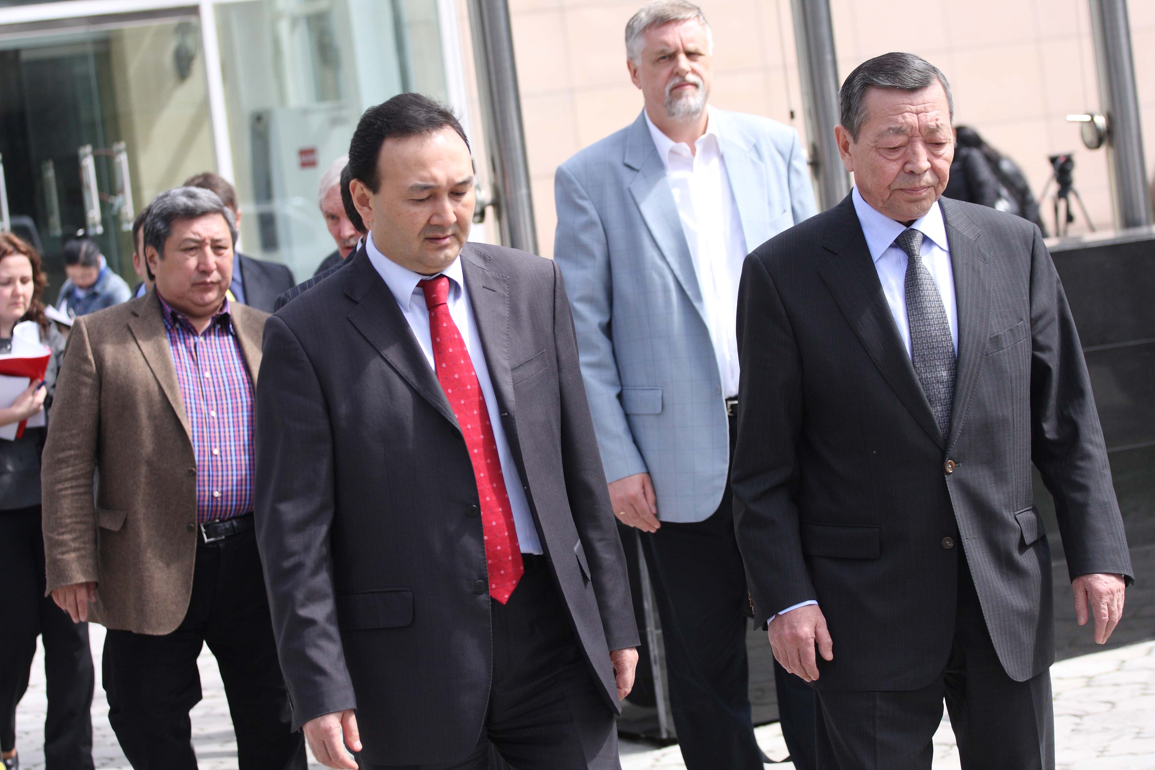 Special Envoy of the OSCE Chairperson-in-Office, Zhanybek Karibzhanov (r) with interim Kyrgyz Deputy Foreign Minister Nurlan Aytmurzaev in Bishkek, 9 April 2010. Behind them is the Director of the OSCE Conflict Prevention Centre, Amb. Herbert Salber.