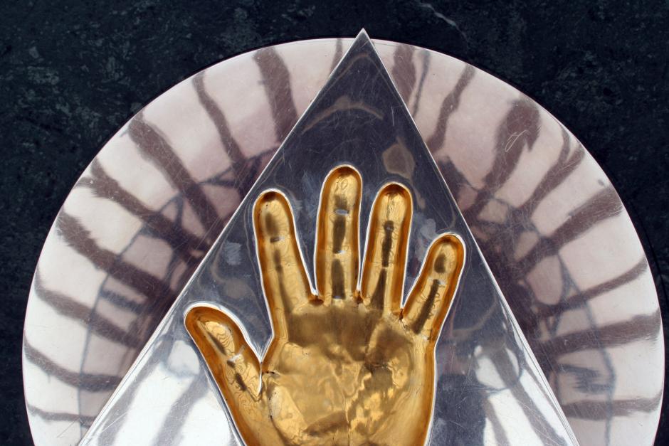 A gilded imprint of the palm of Kazakh President Nursultan Nazarbaev in the Bayterek monument in the capital Astana, 10 April 2007.