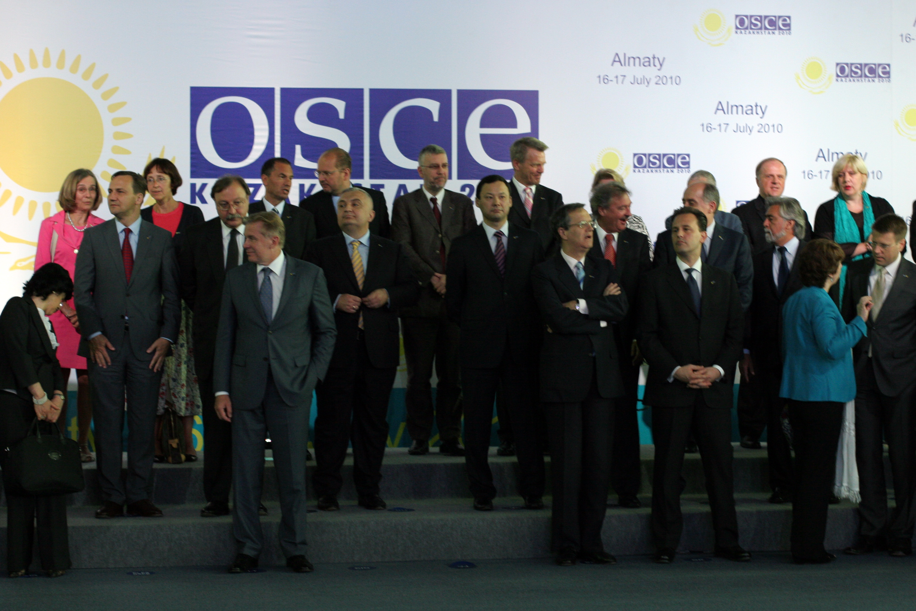 Ministers prepare for a family photo at the Informal Ministerial in Ak-Bulak, near the Kazakh city of Almaty, 17 July 2010.