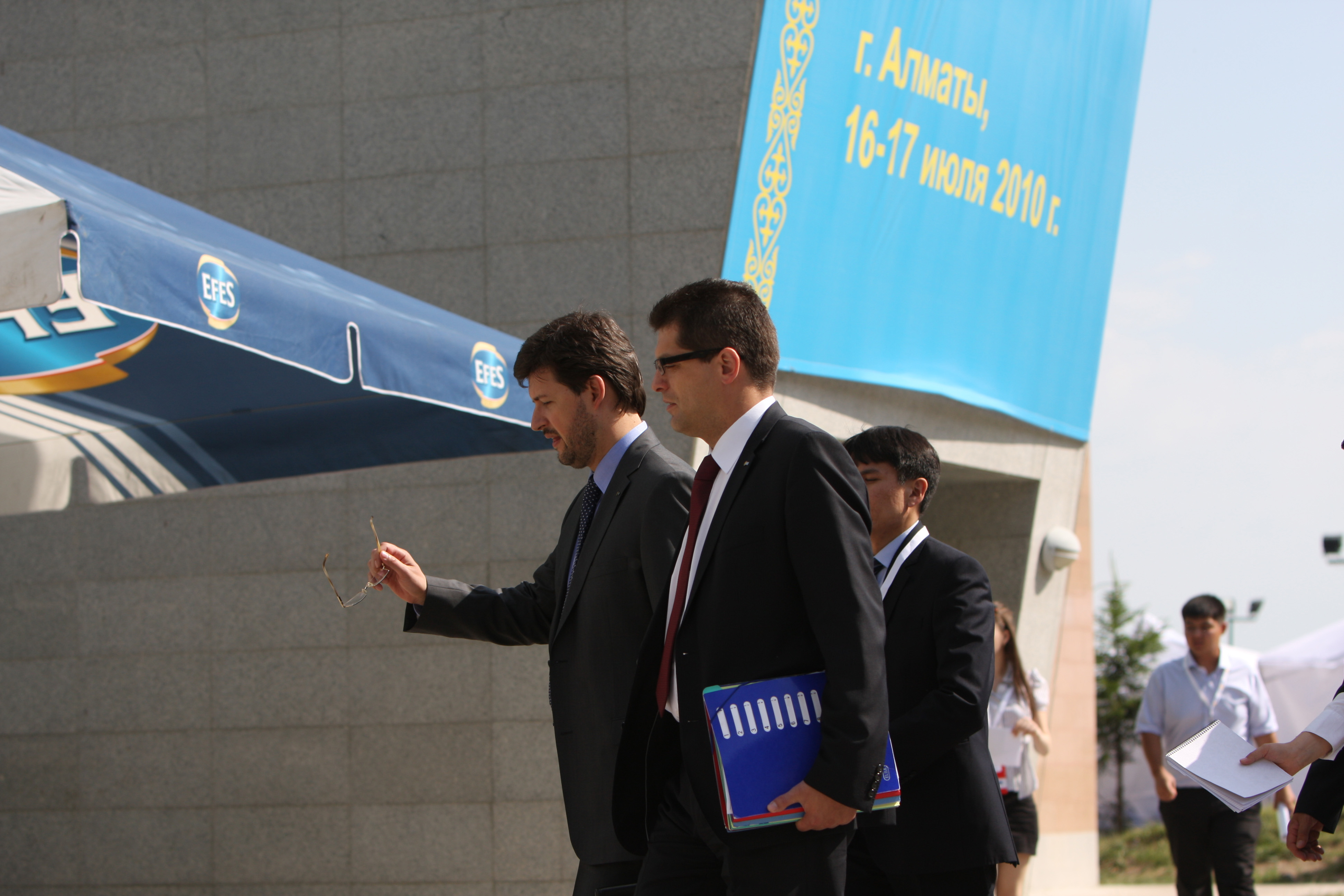 ODIHR Director Ambassador Janez Lenarcic (front) arrives at the Informal Ministerial in Ak-Bulak, near the Kazakh city of Almaty, 17 July 2010.
