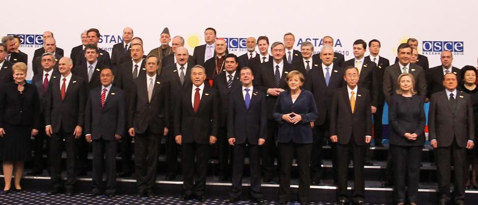 Heads of State and Government during the family photo session before the opening of the OSCE Summit in Astana, 1 December 2010.