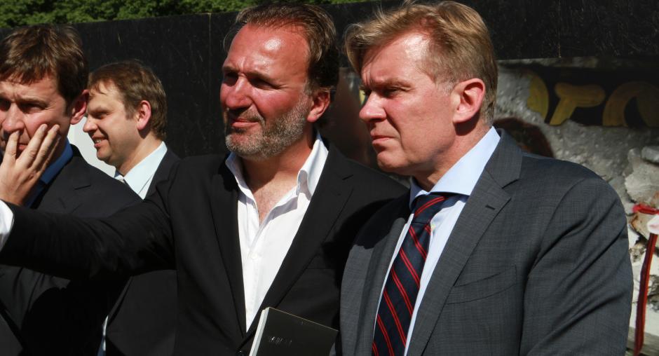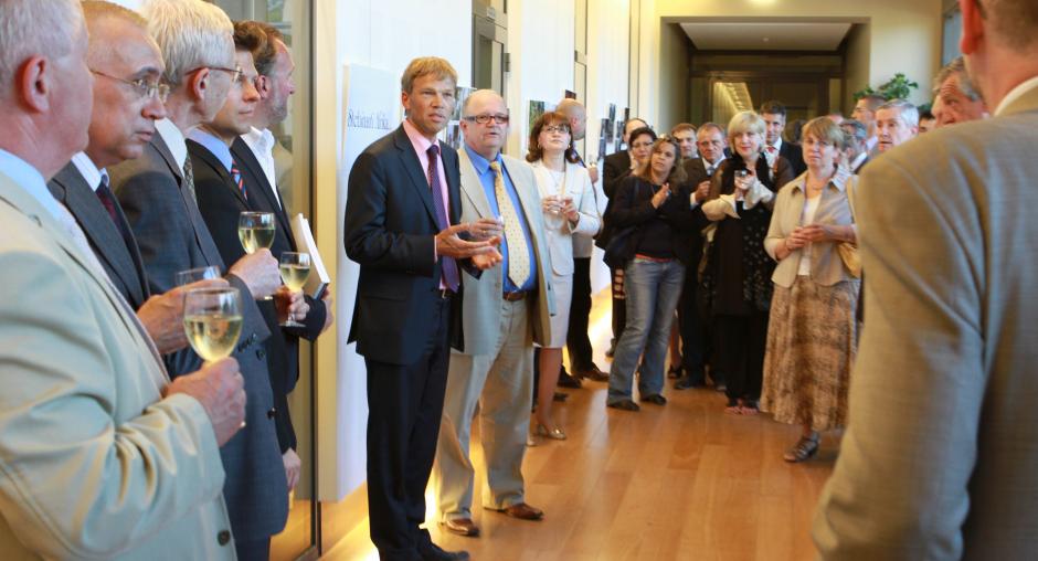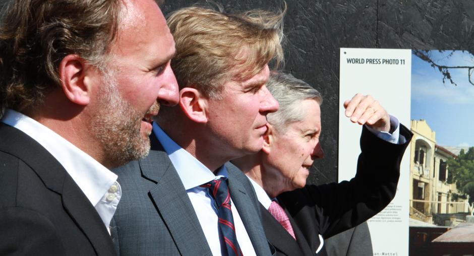 The OSCE Chairperson-in-Office, Lithuanian Foreign Minister Audronius Ažubalis (c) with World Press Photo Co-ordinator Micha Bruinvels (l), Vilnius, 6 June 2011. (OSCE/Jonathan Perfect)