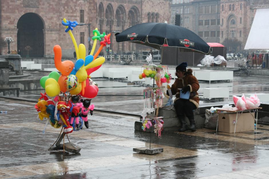 A woman sells balloons and toys in central Yerevan on 26 February 2008.