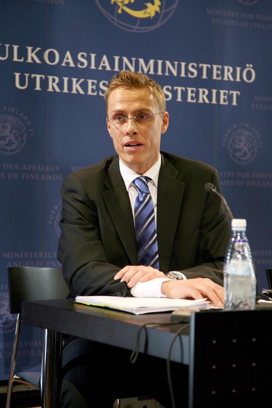 Finland's new Foreign Minister and OSCE Chairman-in-Office, Alexander Stubb, speaks at a press conference following his appointment, Helsinki, 4 April 2008.
