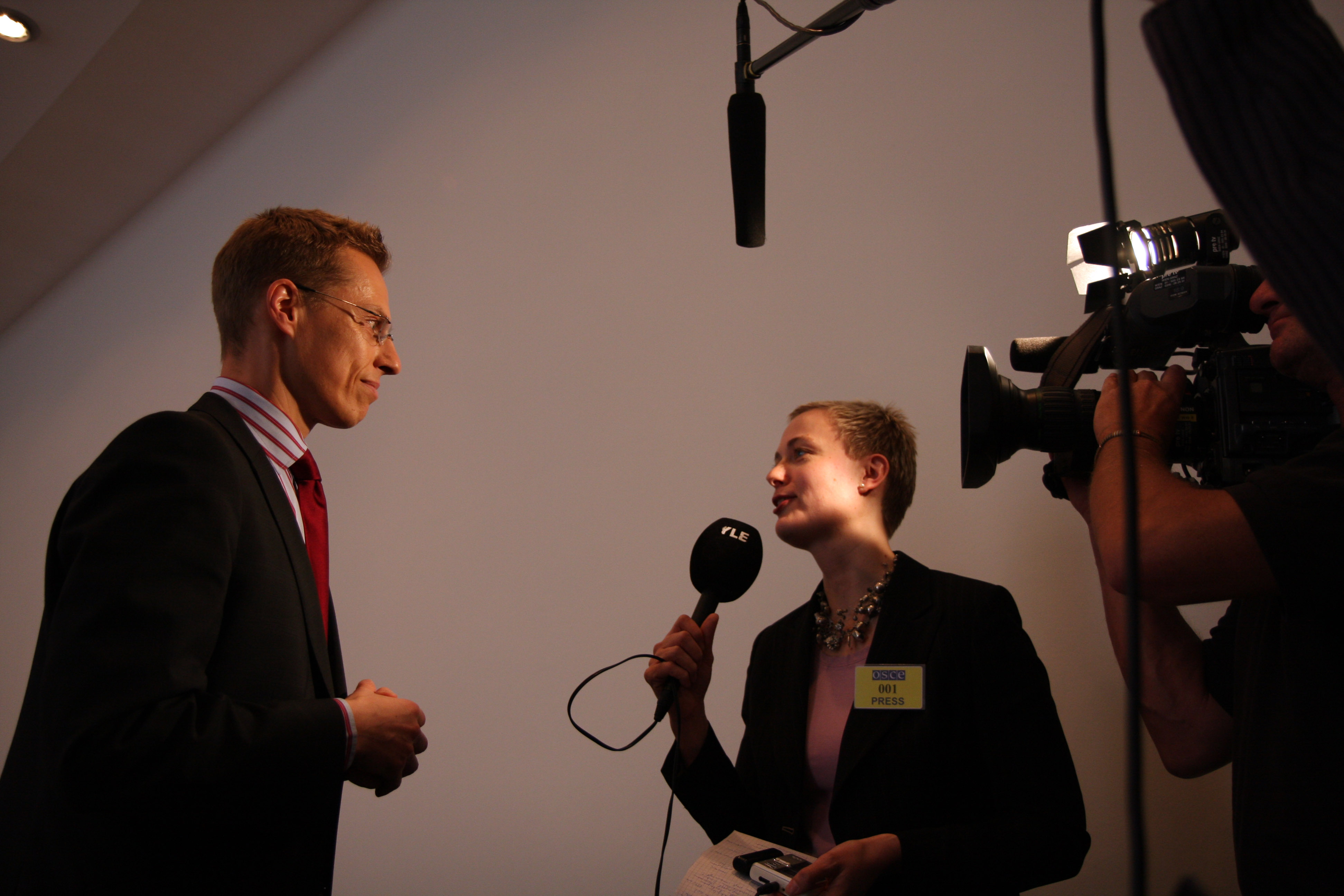 OSCE Chairman Alexander Stubb interviewed by Finnish TV in Vienna, 10 April 2008.