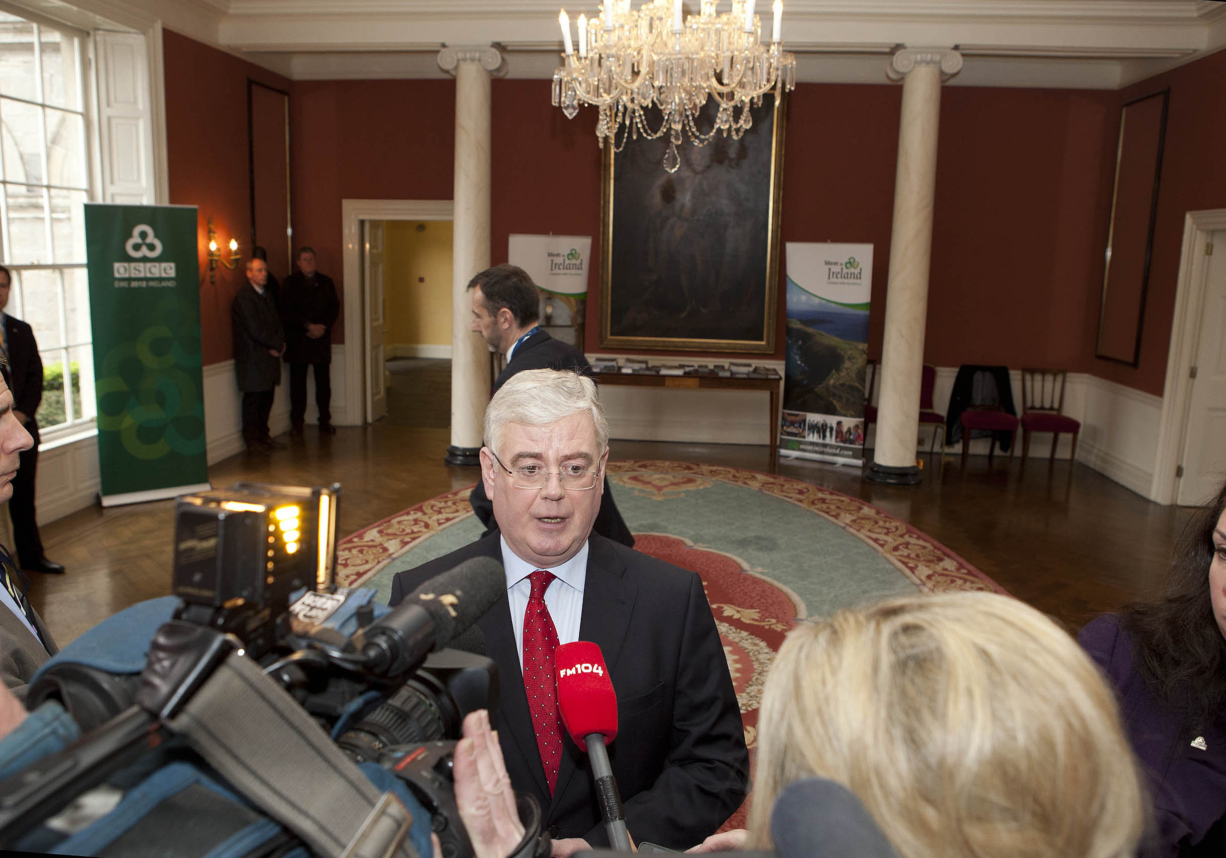 The OSCE Chairperson-in-Office, Ireland's Deputy Prime Minister Eamon Gilmore, speaking to media before a high-level conference on the Northern Ireland peace process, Dublin, 27 April 2012.