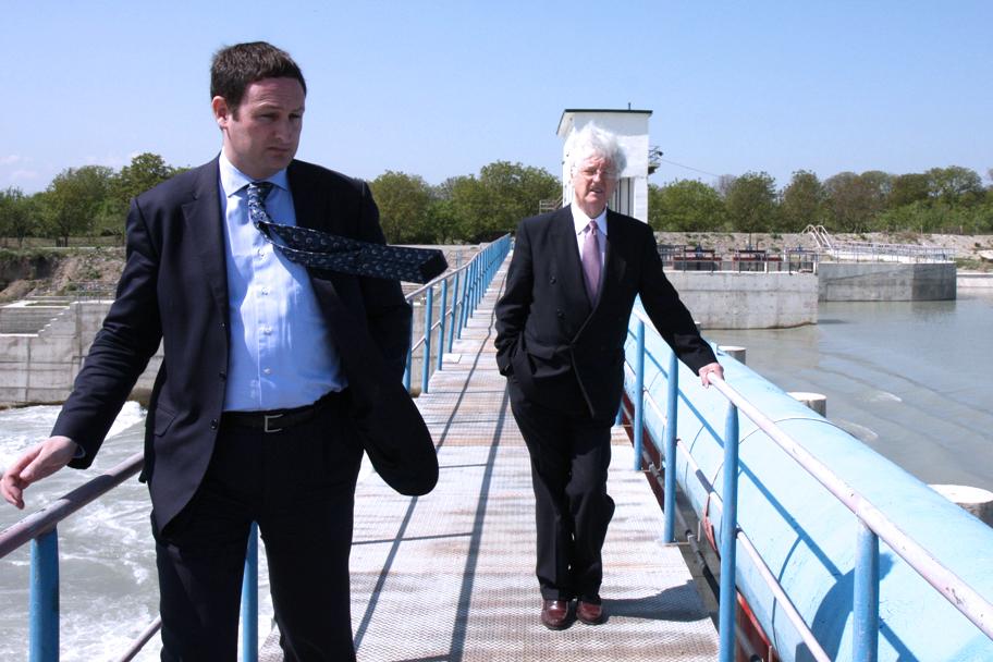 Special Representative of the OSCE Chairperson-in-Office for the South Caucasus Ambassador Pádraig Murphy (r) visits an OSCE water project, Nikosi, 30 April 2012.
