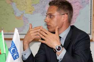 OSCE Chairman-in-Office Alexander Stubb at a press conference in Ashgabat, 5 June 2008.
