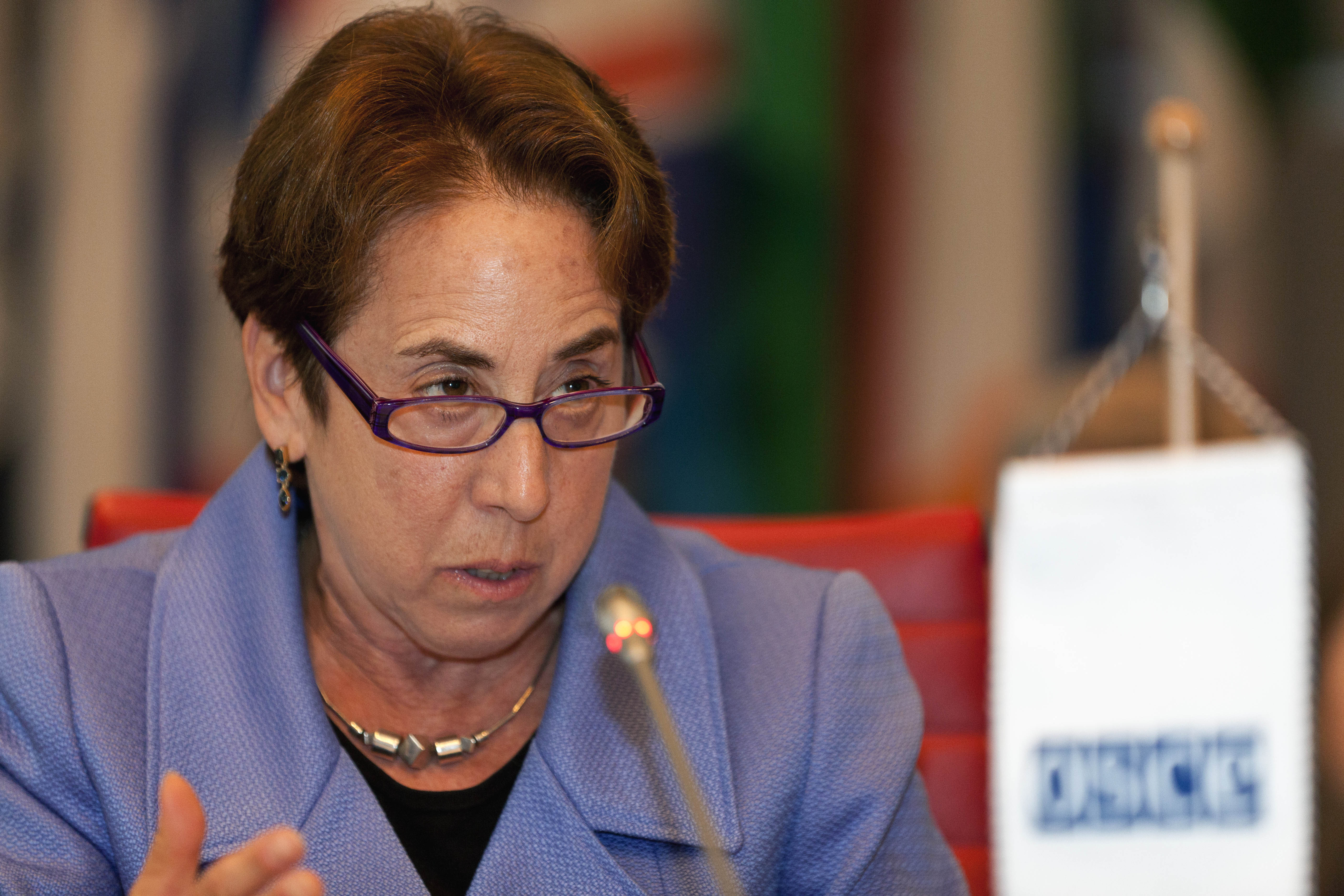 June Zeitlin, Special Representative of the OSCE Chairperson-in-Office on Gender Issues, delivers a report to the OSCE's Permanent Council at the Hofburg in Vienna, 25 October 2012.
