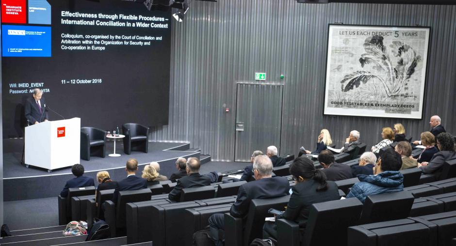 The Court of Conciliation and Arbitration within the OSCE held a colloquium on the topic of conciliation in international law on 11-12 October 2018 in Geneva, co-organised by the Graduate Institute of International and Development Studies. International experts examined various aspects of conciliation procedures under different treaties and allowed to draw parallels to the Stockholm Convention on Conciliation and Arbitration within the OSCE.