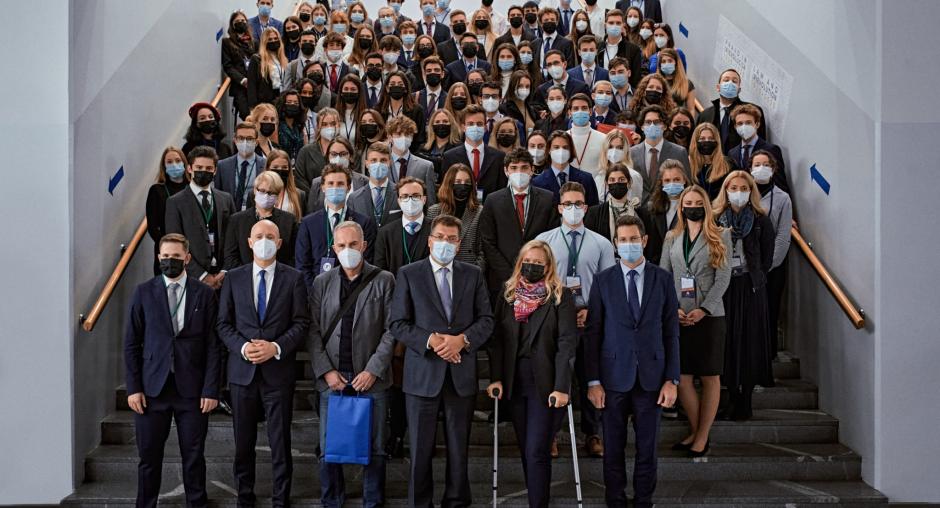 At the opening ceremony and panel titled “The Union of Tomorrow” reflections were shared by Marko Rakovec, Director General of the Directorate for International Law and Protection of Interests at the Ministry of Foreign Affairs of the Republic of Slovenia; Janez Lenarčič, European Commissioner for Crisis Management; Adrian Pollmann, Ambassador of the Federal Republic of Germany; Igor Evgen Bergant, journalist and news anchor at Radiotelevision of Slovenia, and Gal Veber, a student Secretary General of the 2021 MUNLawS conference. Emmanuel Decaux, President of the OSCE Court of Conciliation and Arbitration, delivered a video address to the participants.