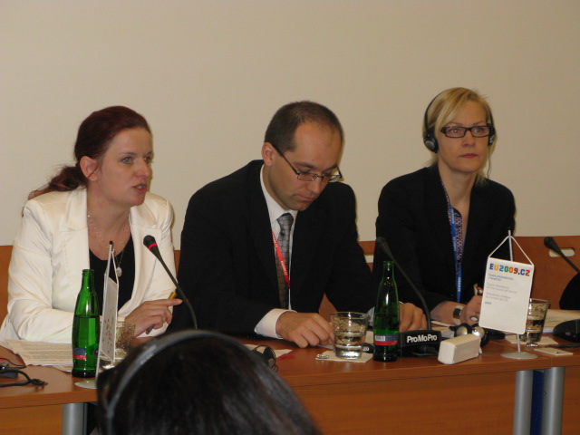 Czech Deputy Interior Minister Lenka Ptackova Melicharova (l), with Eva Biaudet (r), OSCE Special Representative on combating trafficking, and Martin Linhart of the Interior Ministry at a conference of EU trafficking rapporteurs, Prague, 30 March 2009.