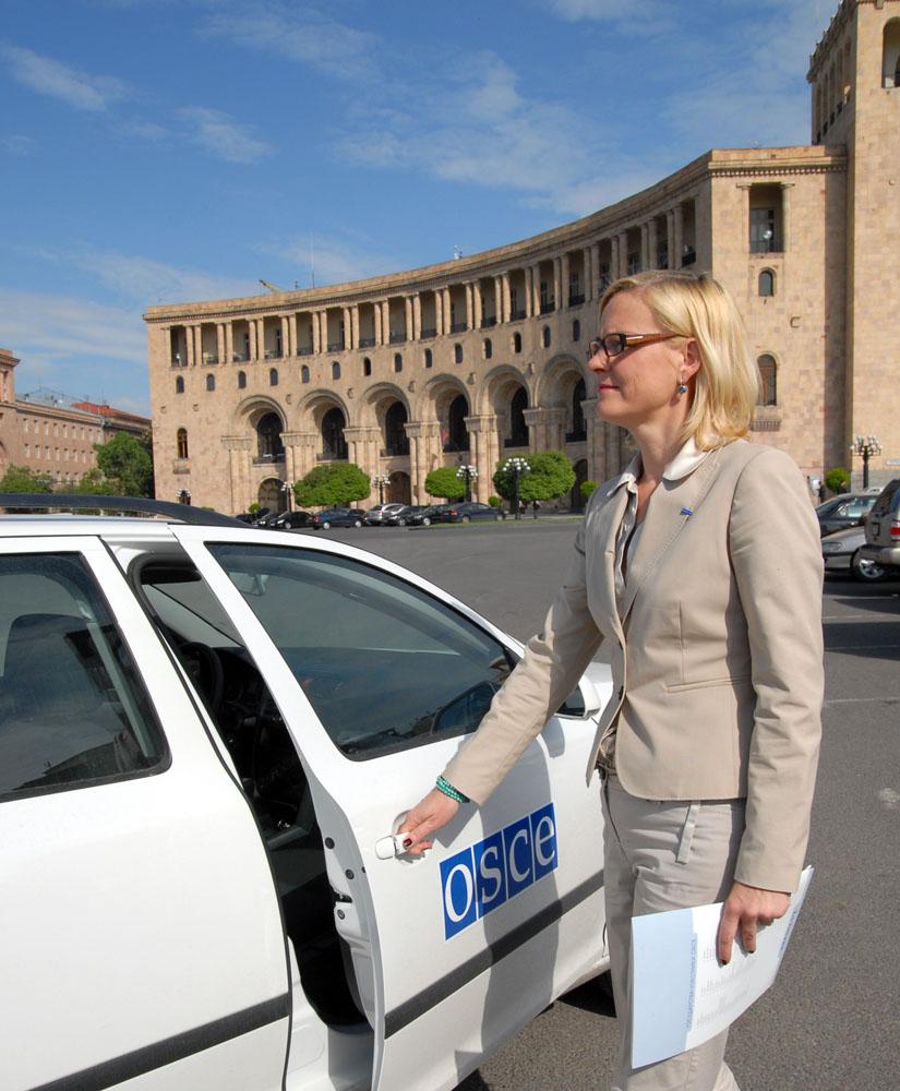 Eva Biaudet, OSCE Special Representative on combating trafficking, in Yerevan's main square during an official visit to assess human trafficking in the region, Armenia, 7 May 2009.