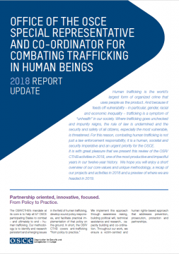 This Report Update provides a short overview of the core values and unique methodology of the OSCE Office of the Special Representative and Co-ordinator for Combating Trafficking in Human Beings, a recap of its projects and activities in 2018, and a preview of priority areas for 2019.