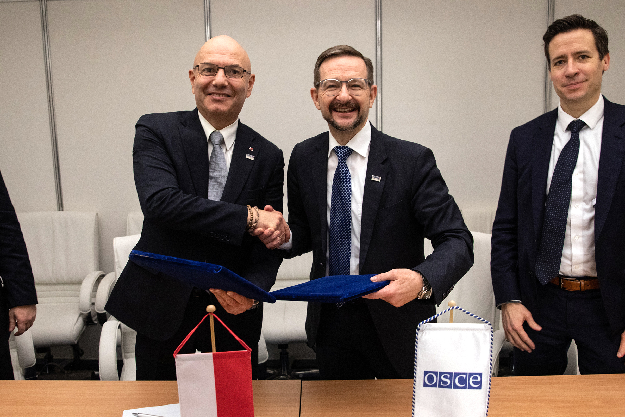OSCE Secretary General Thomas Greminger (r) and Laurent Anselmi, Minister of Foreign Affairs and Co-operation of the Principality of Monaco, the 26th OSCE Ministerial Council, Bratislava, 5 December 2019.