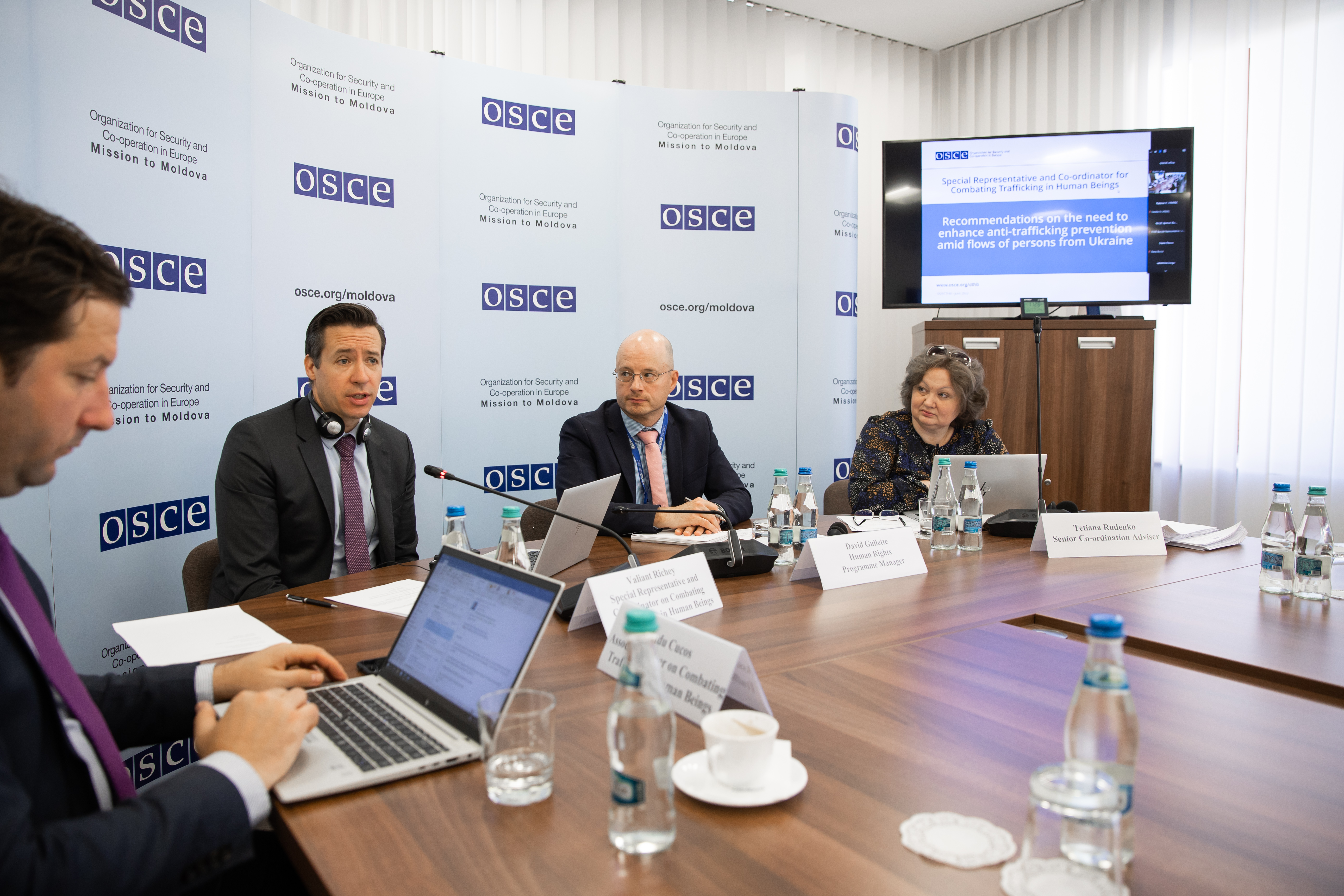OSCE Special Representative and Co-ordinator for Combating Trafficking in Human Beings, Valiant Richey, addressed the participants at a workshop at the OSCE Mission to Moldova based on the recommendations issued by his Office to reduce the risks of human trafficking, Chisinau, 7 June 2022.