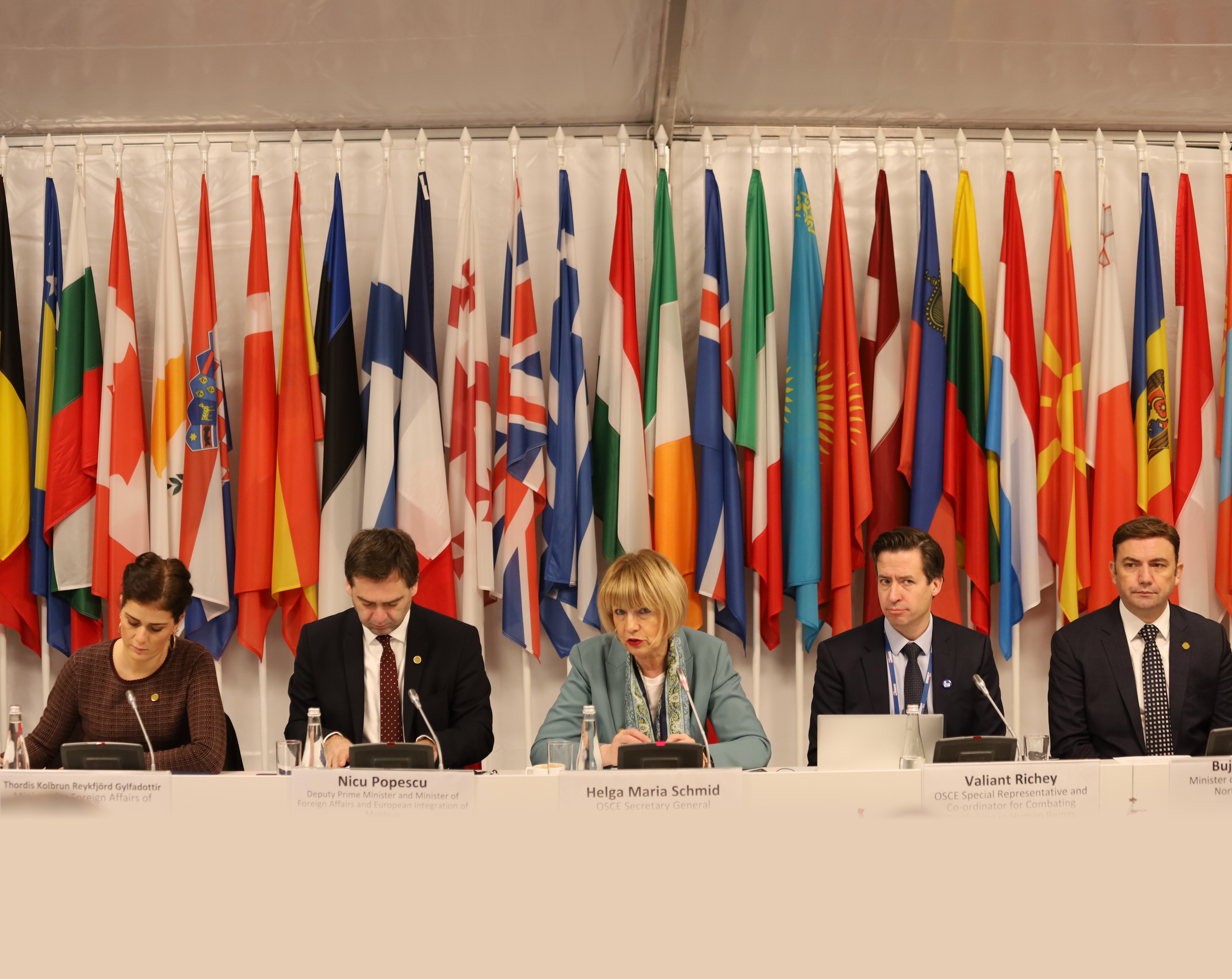 Panelists at the side event on preventing a human trafficking crisis held on the margins of the Ministerial Council held in Łódź, Poland, on 1 December 2022.