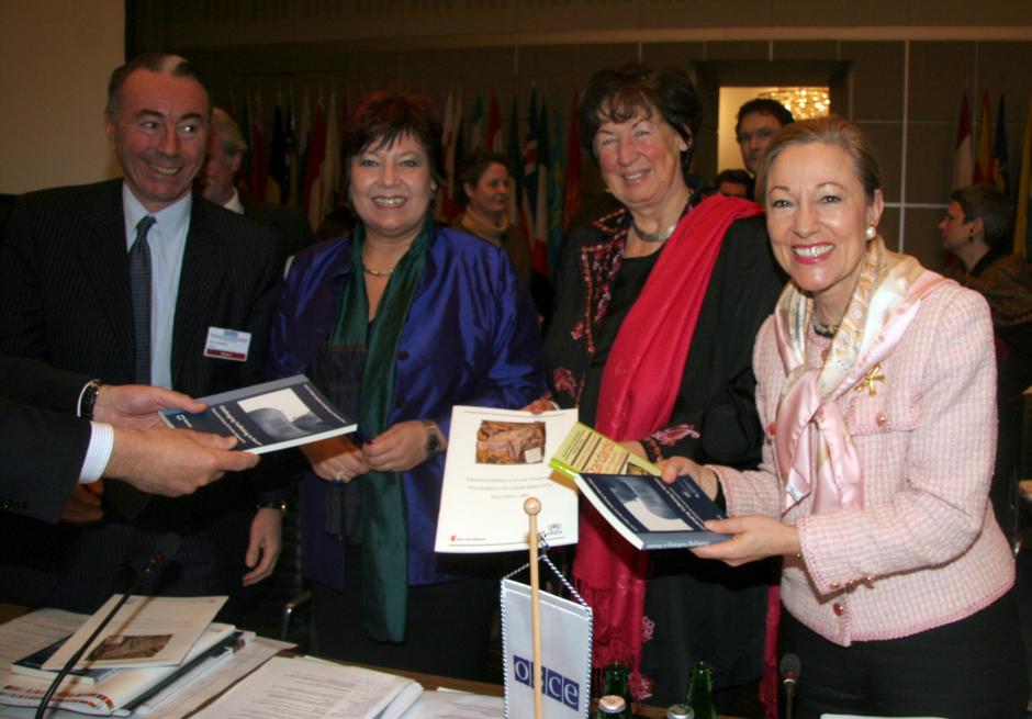 OSCE Special Representative on Combating Trafficking in Human Beings Helga Konrad (2nd l), Austrian Interior Minister Liese Prokop (2nd r) and EU Commissioner Benita Ferrero-Waldner (r) at an OSCE conference on human trafficking in Vienna, 17 March 2006.