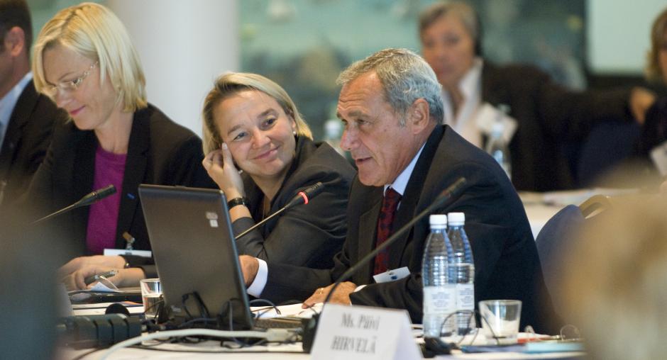 Eva Biaudet (left), OSCE Special Representative; Tuija Brax (centre), Finnish Minister of Justice; and Pietro Grasso (right), Italian Chief Anti-Mafia Prosecutor, at a conference in Helsinki on the prosecution of trafficking cases, 10 September 2008. (OSCE/Petri Krook)