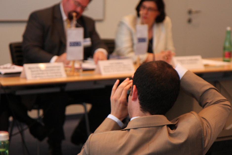 A journalist takes photos at a press briefing during the 10th Alliance against Trafficking in Persons Conference, Vienna, 18 June 2010.