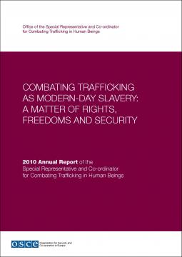 The 2010 Annual Report of the Special Representative and Co-ordinator for Combating Trafficking in Human Beings is divided in four parts and deals with different aspects of the phenomenon, policies, actions, and challenges deriving from trafficking in women, men, and children for many different exploitative purposes. Part I “Trafficking in Human Beings as Modern-Day Slavery” explores the multiple forms of trafficking and addresses them as severe human rights violations,
