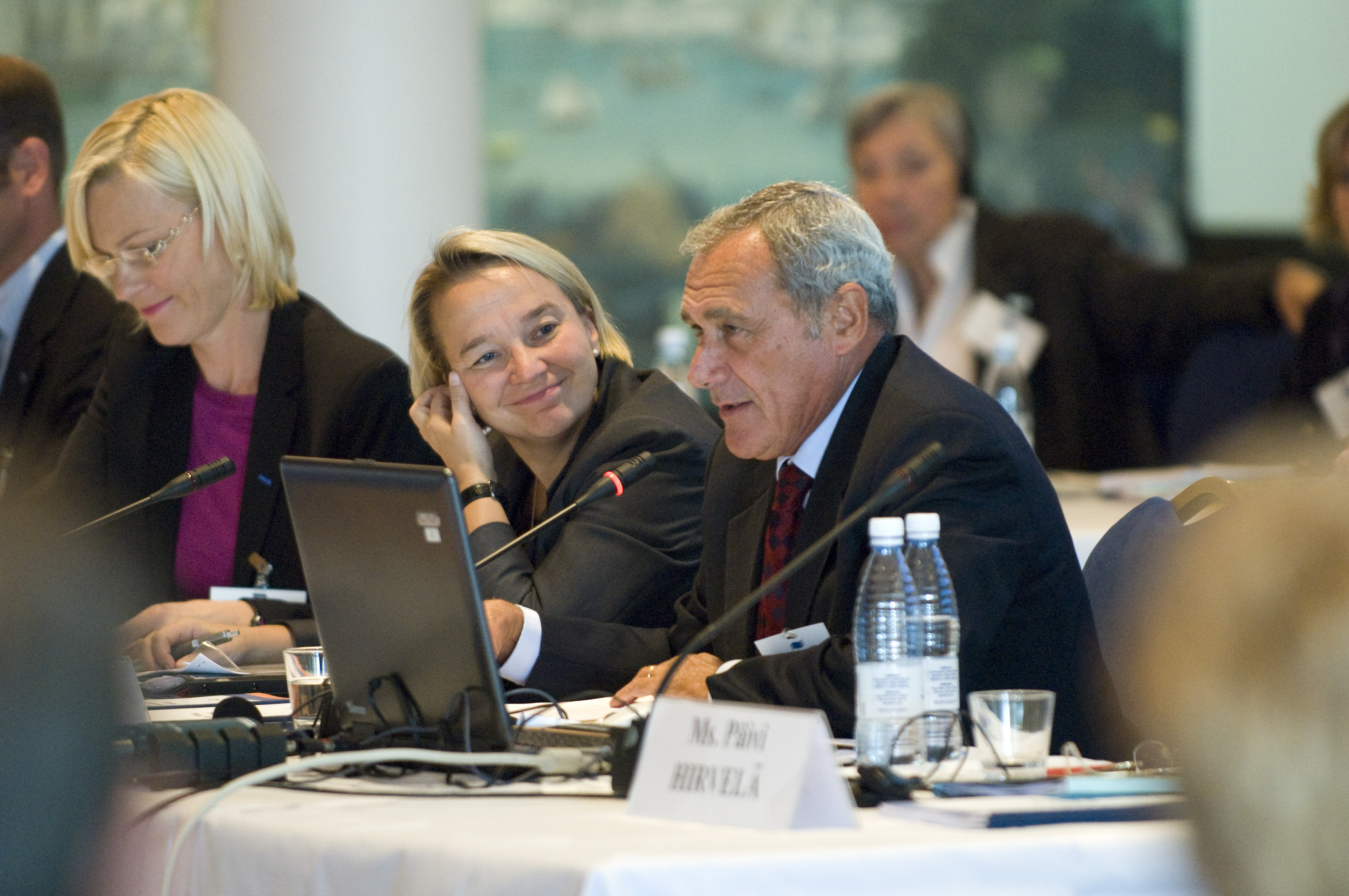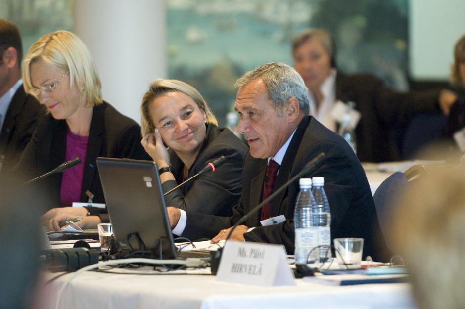 Eva Biaudet (left), OSCE Special Representative; Tuija Brax (centre), Finnish Minister of Justice; and Pietro Grasso (right), Italian Chief Anti-Mafia Prosecutor, at a conference in Helsinki on the prosecution of trafficking cases, 10 September 2008.