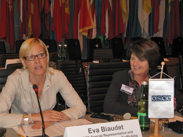 OSCE Special Representative on combating human trafficking Eva Biaudet (left) and Corinne Dettmeijer, Dutch National Rapporteur on Human Trafficking, at a seminar on anti-trafficking rapporteurs in Vienna, 23 September 2008.