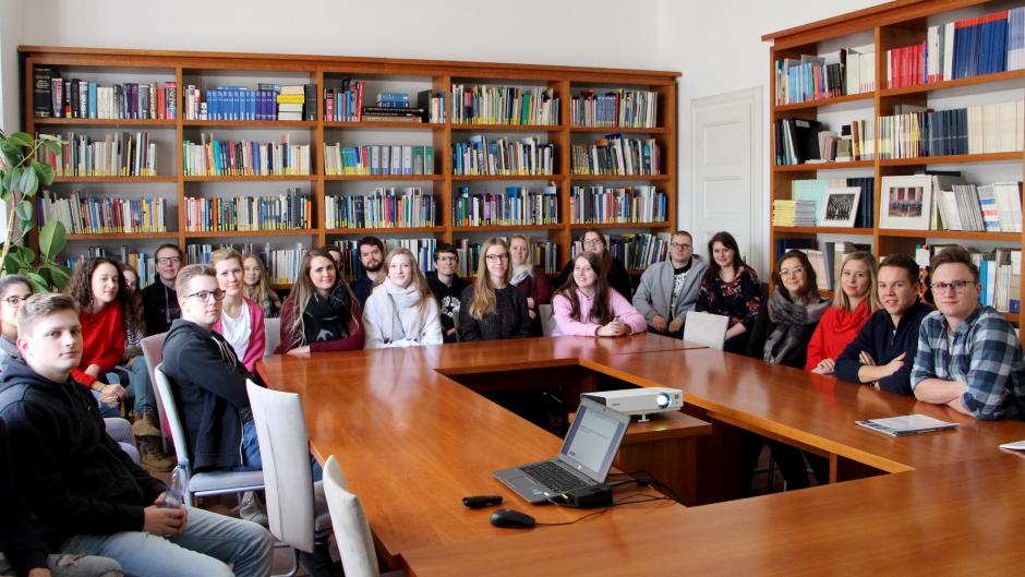 Presentation to a group of students at the Documentation Centre in Prague.