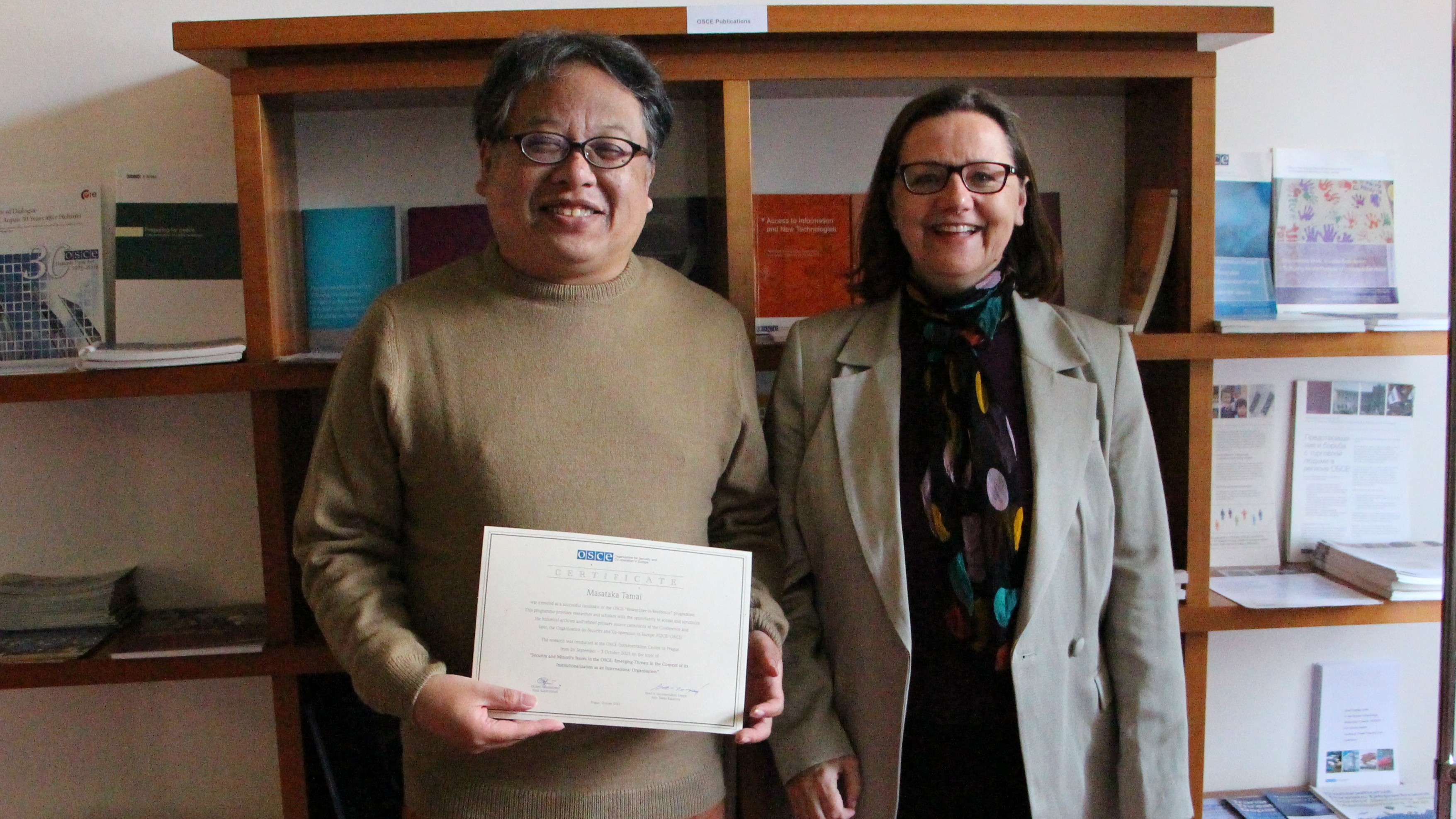 Prof. Masataka Tamai, Akita University, Japan, Ambassador Halka Kaiserova, Head of the Documentation Centre in Prague, DCiP Researcher-in-Residence program