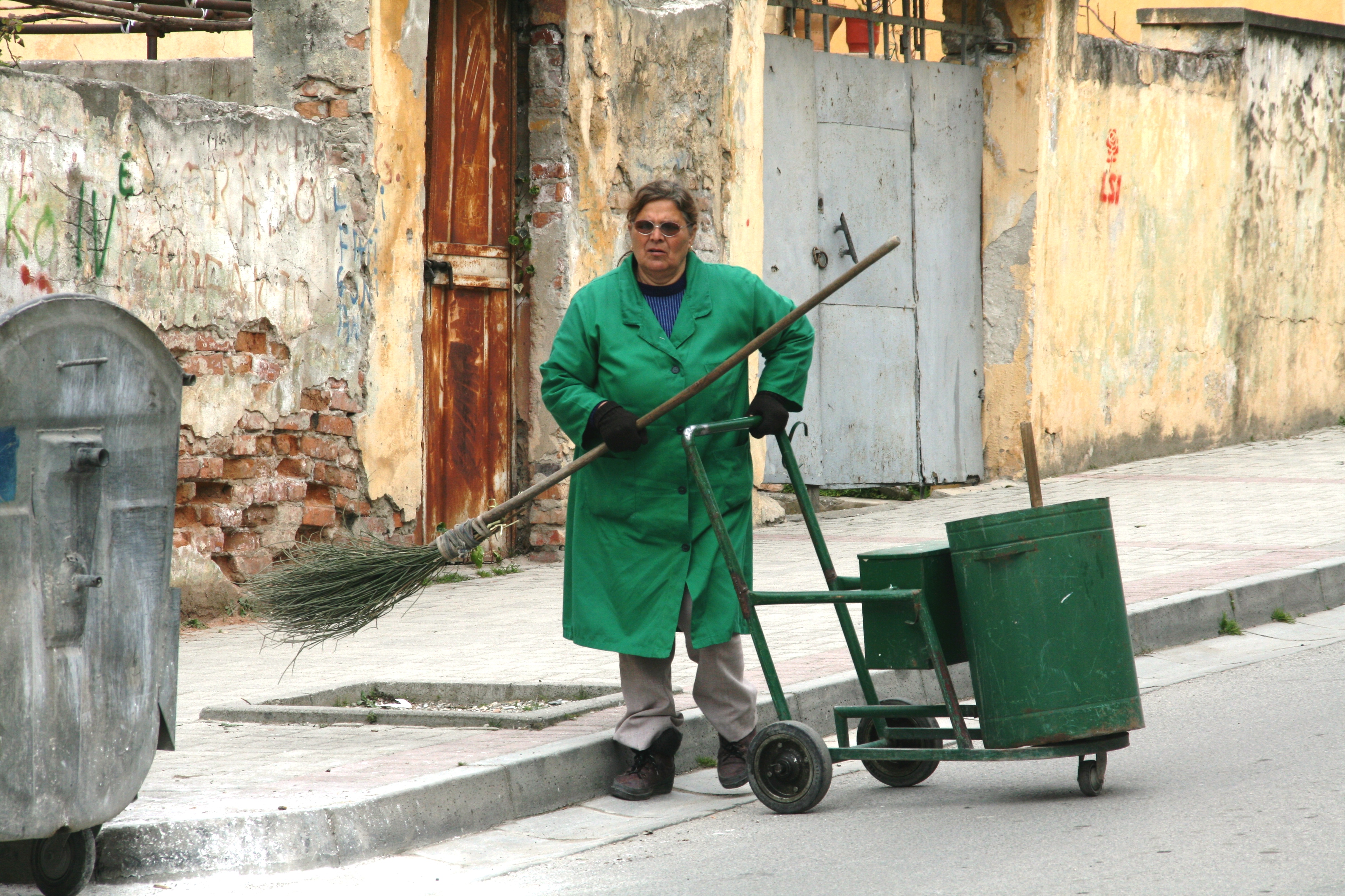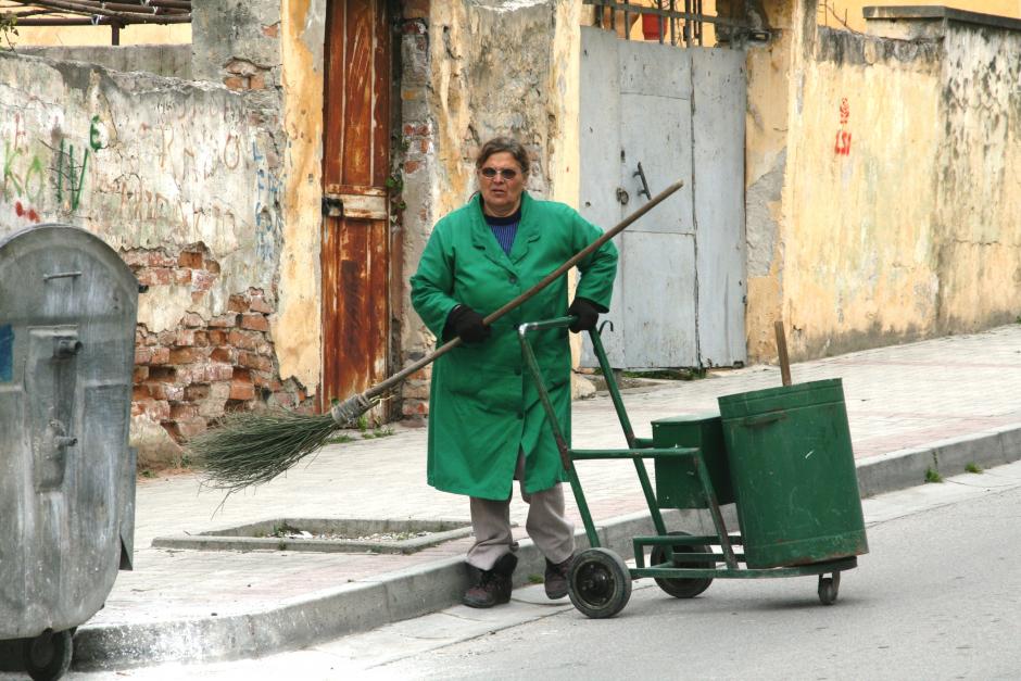 Woman cleaning the streets in Durres, Albania, March 2009
